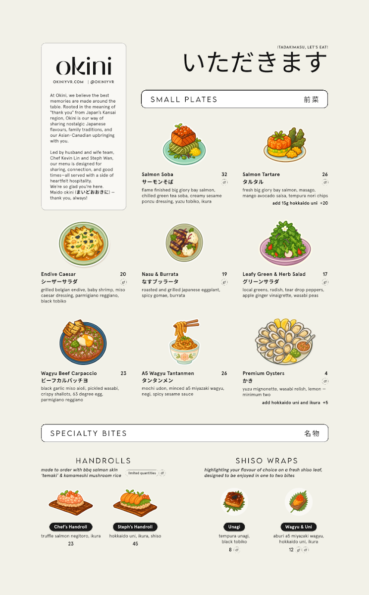 At Okini Restaurant & Bar, located in the heart of Vancouver, a unique menu awaits diners seeking an innovative culinary experience. The offerings focus on exceptional freshness and creativity, reflecting both land and sea influences.